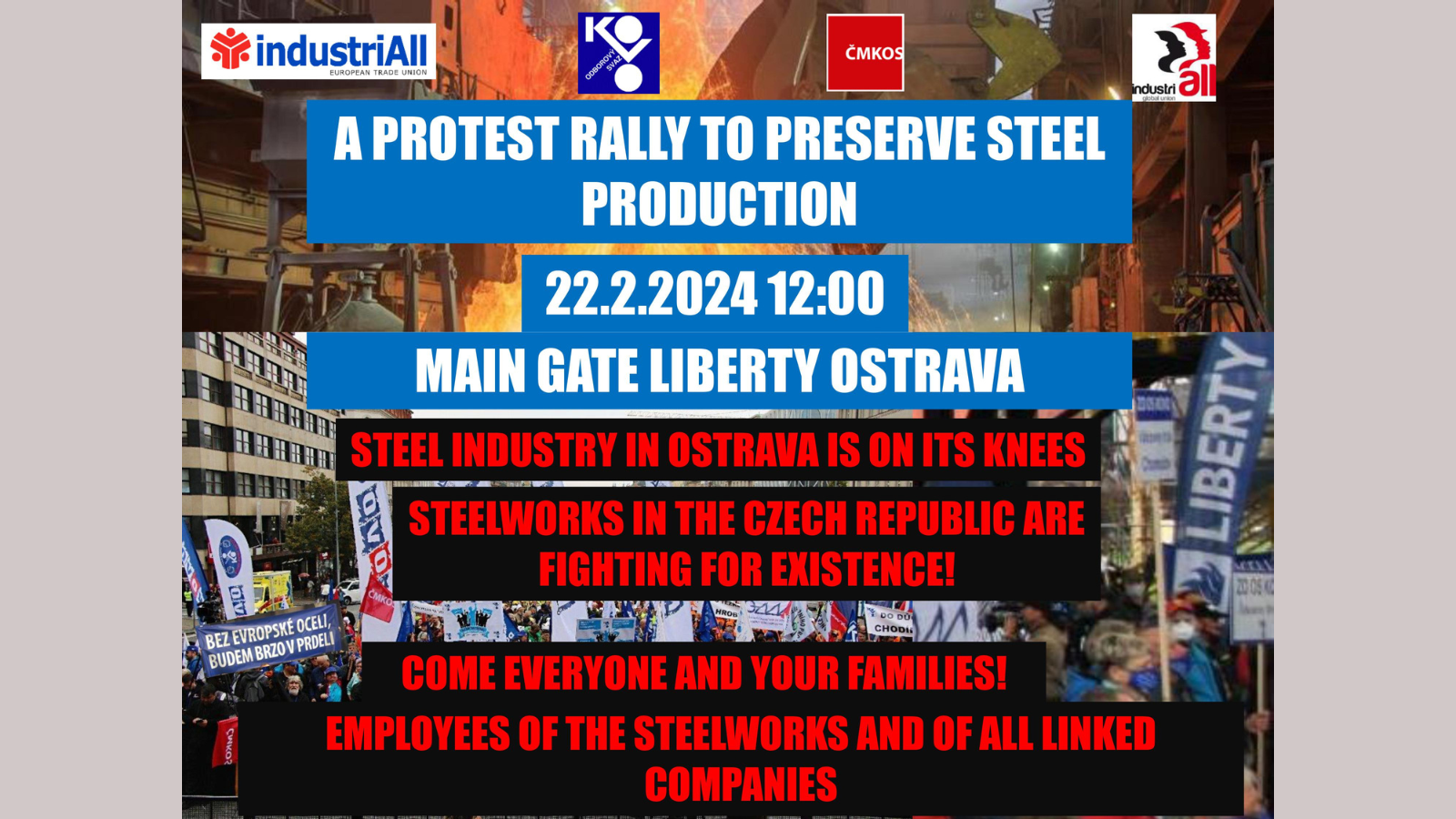 Following a call by the Czech affiliate of industriAll Europe, OS KOVO, 6,000 workers at Liberty Steel in Ostrava, Czech Republic, will organise a rally in front of the steel plant together with family members, the local community and workers whose jobs are indirectly at risk. The Ostrava steel plant is indirectly responsible for some 30,000 indirect jobs in the region.