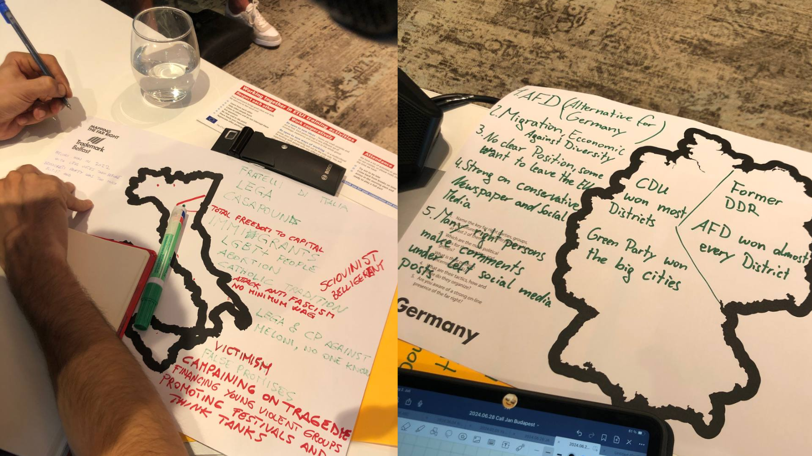 An even bigger shock after the EU elections came from France’s snap elections. As the country prepares to head to the polls, seven motivated, young French unionists came to Budapest to build up their capacities in their ongoing efforts to counter the spread of the Far Right among workers. Together with fellow-unionists from the other countries, they learned to identify far-right ideas, to untangle the political economic context that has led to the rise of the Far Right (the austerity after the previous 2008-09 financial crisis), and to discover the strategies that these parties have been using to increase their popularity.