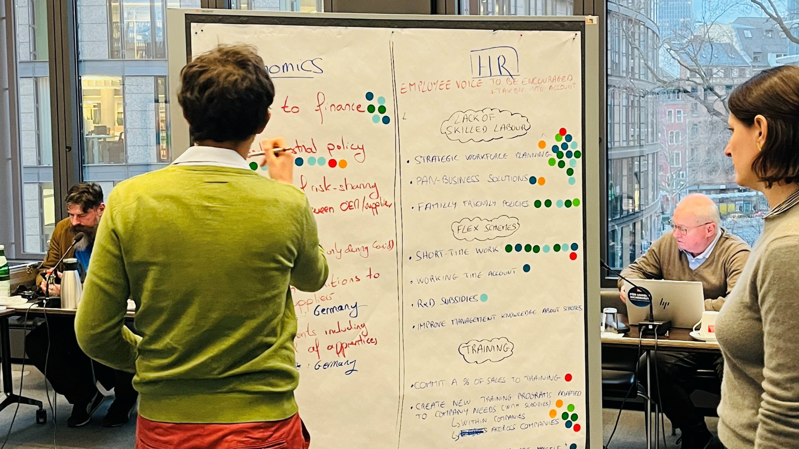 The full-day workshop was followed by a site visit to Rolls-Royce Oberursel, a tier 1 supplier which produces blisk compressors; a key technology for fuel-efficient engines. Participants met with Works Council representatives and management to discuss challenges such as attracting and retaining skilled workers, supply chain disruptions, and work time planning. Over 50 young people at the site benefit from the German dual education system and a presentation of the apprenticeship programme followed, with a tour of the company’s onsite training facilities.