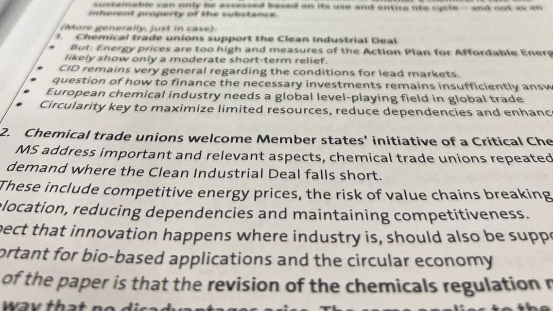 - Retaining a chemical industry in Europe: it must include retaining quality jobs in the chemical industry in Europe, public support must have social conditionality.
