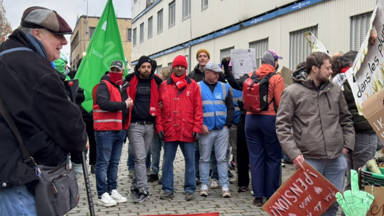 On 26 November, pickets multiplied from early morning across all sectors of economic activity and in all regions of the country. A general strike was staged following industrial actions in public services on the previous two days. Red, green, and blue flags, along with banners and placards, were visible throughout Belgium. The trade union front remains united and has been reinforced by these three days of exemplary mobilisation!