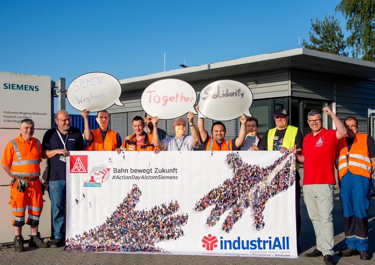 Three months ago, trade unions representing both Alstom Transport and Siemens Mobility workers across Europe met in Brussels under the auspices of industriAll Europe to share their concerns about the strategies being pursued by the two companies that announced their intention to merge in order to create a ‘European champion’ of the railway supply industry capable of countering global competitors. Even at that point in time, the lack of visibility on both Alstom and Siemens’ long-term industrial project sparked serious concerns as to their viable industrial and social futures. While an agreement aimed at securing jobs, sites and innovation capacities was reached in Germany, a so-called similar agreement struck between the French government and Siemens management remained undisclosed to the trade unions and unreliable. Moreover, no social guarantee had been provided for any of the other countries. The lack of equal treatment of all Alstom and Siemens workers appeared incomprehensible and unacceptable.