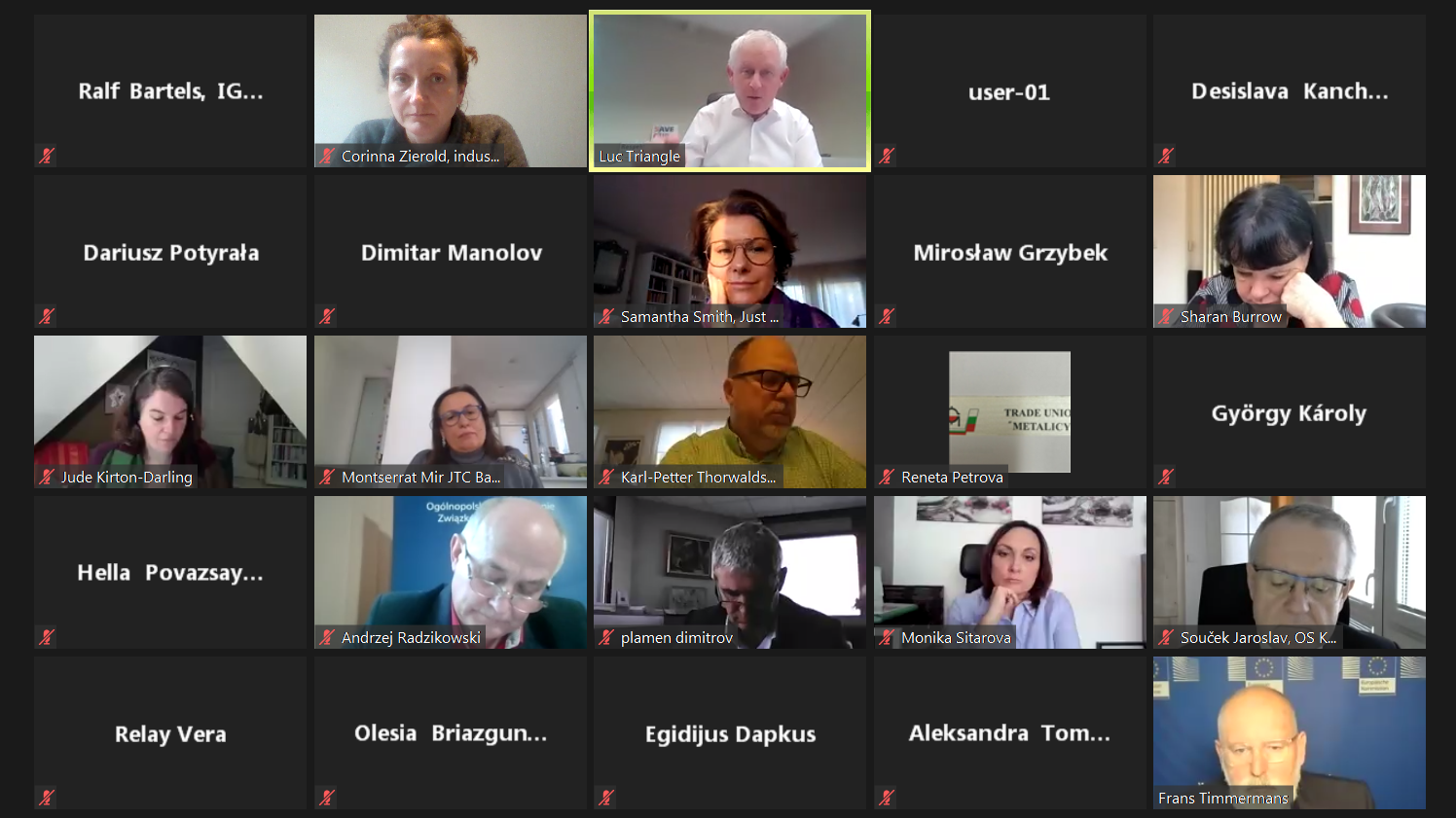 The dialogue with Mr Timmermans was the final event in a series of Roundtable discussions on Just Transition of Heavy Industry in Central and Eastern Europe organised by industriAll Europe, together with the ITUC’s Just Transition Center, that began in late November 2020, to address the specific concerns of trade unions managing the decarbonisation process in the energy-intensive and energy sectors.