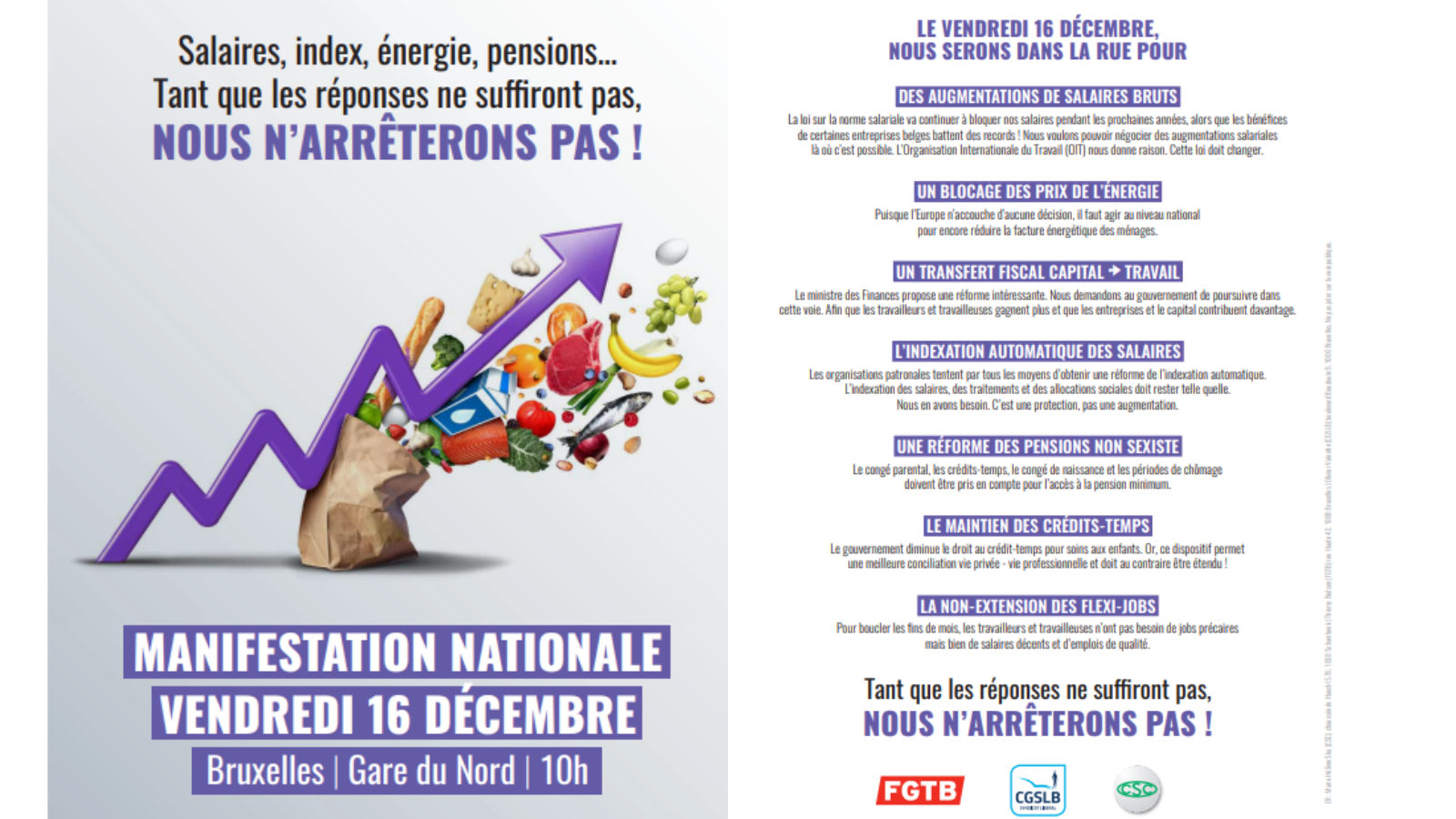 Le 1er décembre, notre Comité exécutif a décidé de soutenir la manifestation belge prévue le 16 décembre.