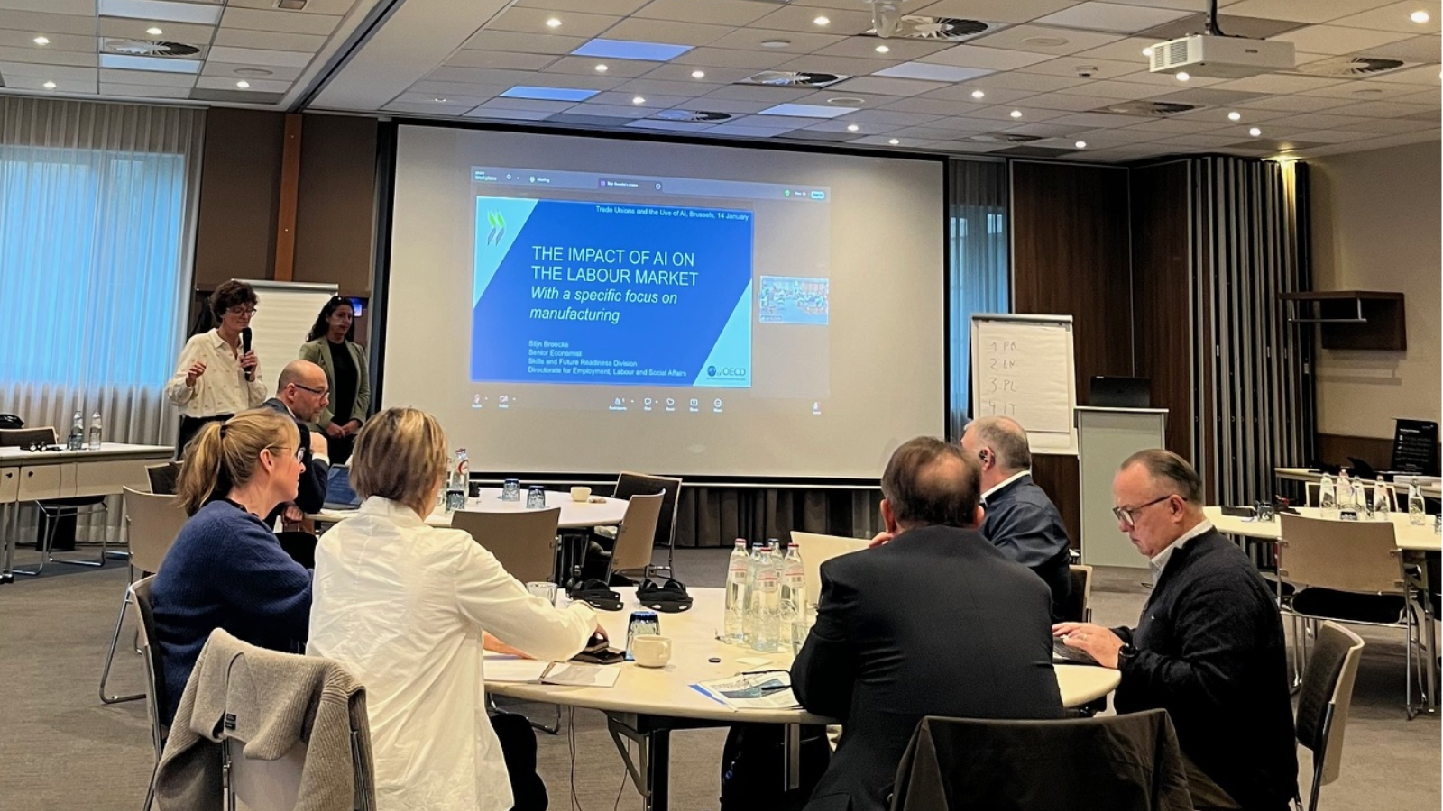 The workshop combined research-based analysis with policy perspectives and practical experience from the workplace. Contributions came from ETUI, the Organisation for Economic Co-operation and Development (OECD), the European Commission, including the AI Office, and the Center for Democracy and Technology, alongside exchanges rooted in participants’ own day-to-day trade union practice.