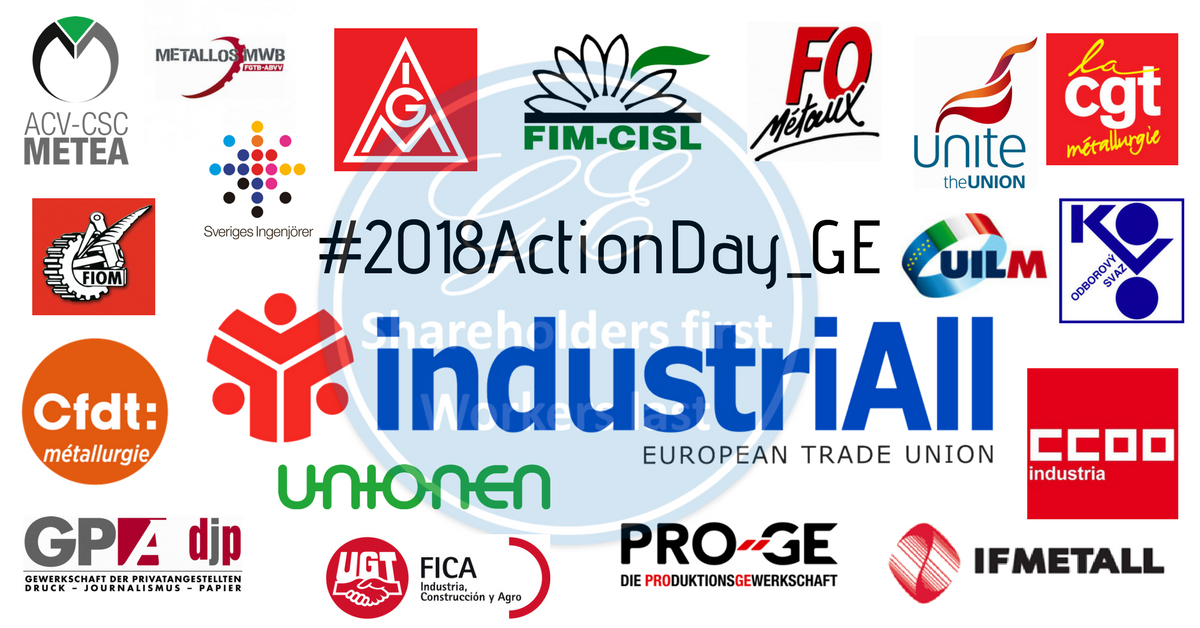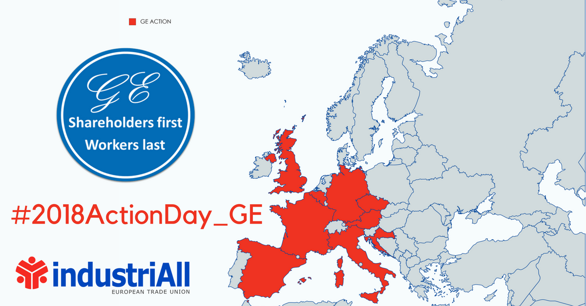 After again having to reiterate in March their stern warning against decisions which are heading GE towards irreversible consequences, trade unions representing GE workers across Europe decided to run a series of Action Days under the coordination of industriAll Europe (#2018ActionDay_GE). GE workers carried out actions across the continent to demonstrate their determination to reject the planned 5,500 job cuts and urge GE management to suspend its restructuring plan. The successful actions send a very strong signal about GE workers’ and trade unions’ commitment to ensure the future of their jobs and industrial sites in Europe.