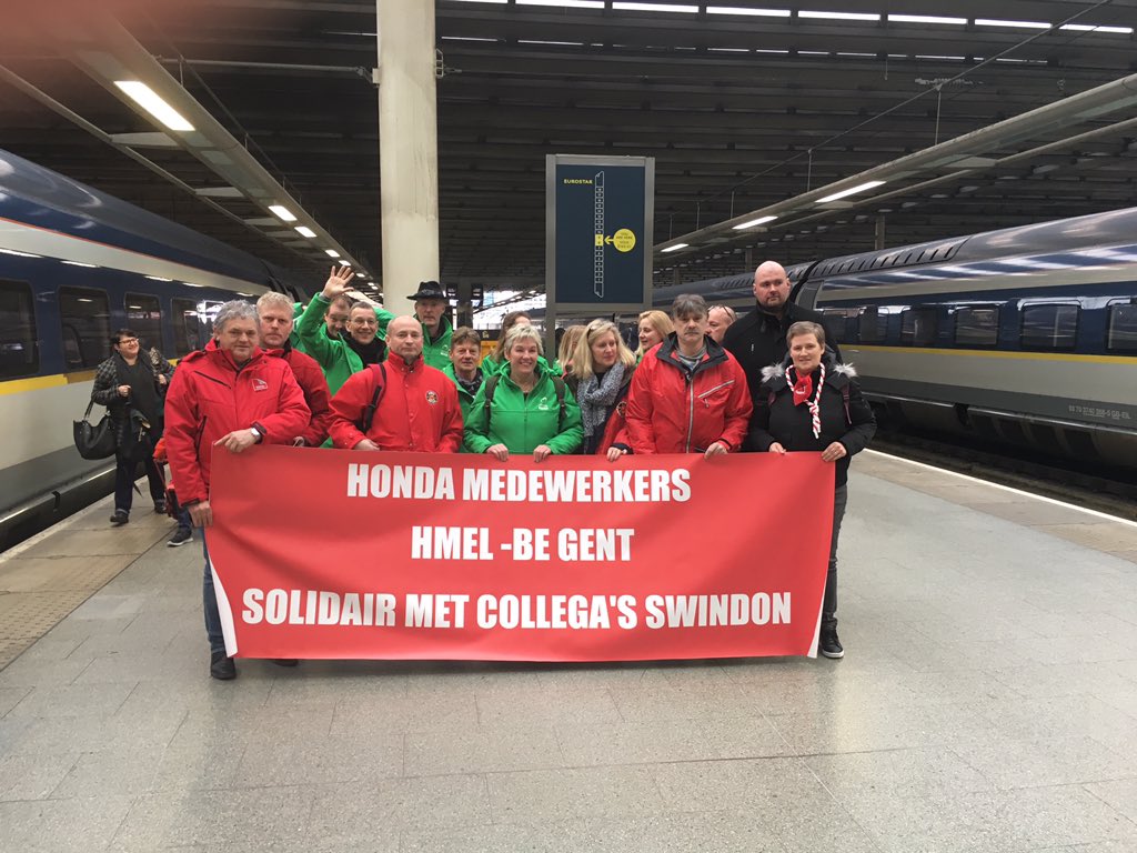 This solidarity action follows a coordinating meeting at IndustriAll Europe's headquarters In Brussels last week between Honda workers from across Europe and is a first step towards brinding Honda management to the negotiating table over the future of Swindon and their whole European business.