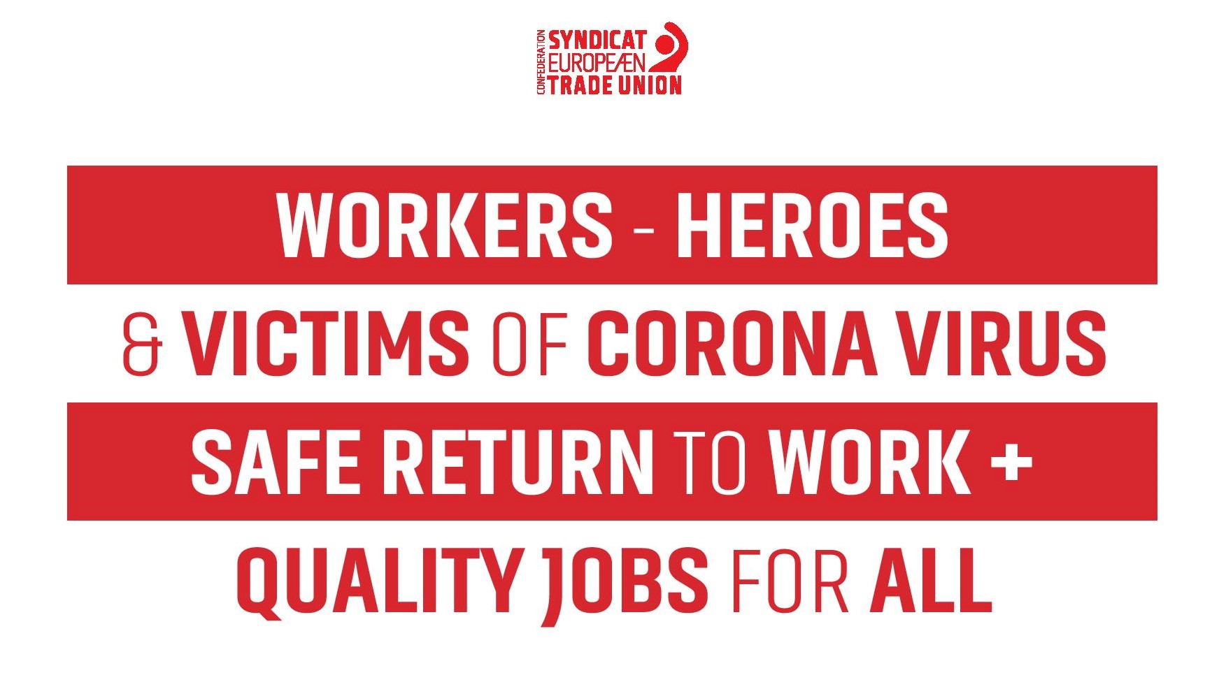 On this special May Day 2020, the European trade union movement is honouring the millions of workers that have risked their lives providing essential services in the COVID-19 crisis. Some have become its victims, including millions of workers who lost their jobs. We need a safe return to work for all workers who have lost their job, are temporarily off work, working from home, or are already unemployed. We need an ambitious European Recovery Plan to tackle unemployment and poverty, to raise wages and to improve working conditions.