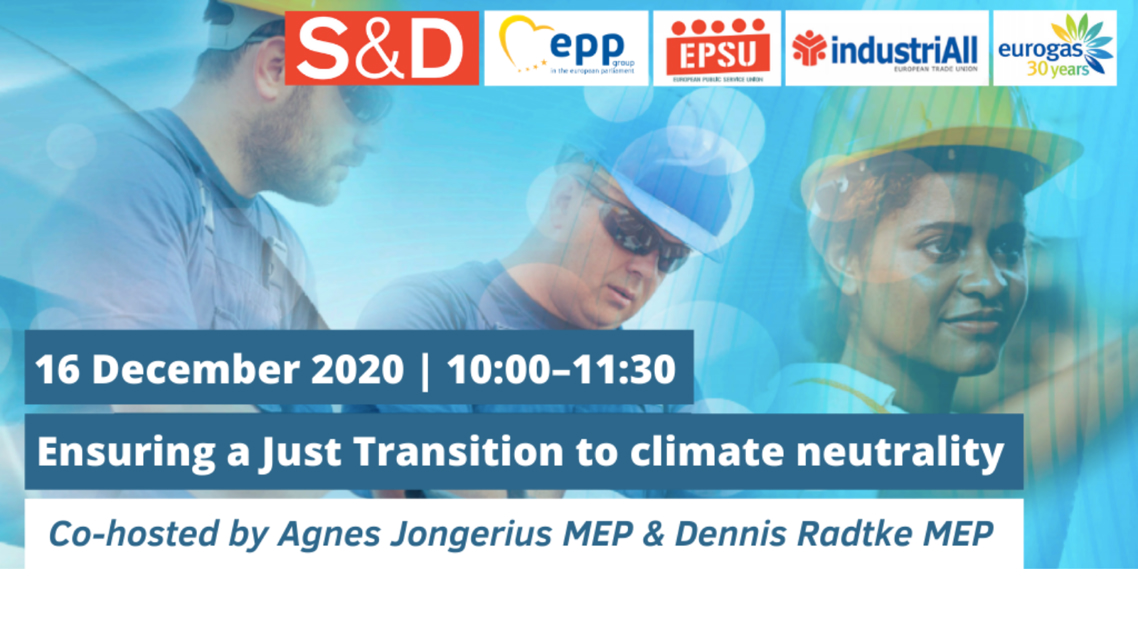 The European Social Partners in the gas sector, Eurogas, EPSU and industriAll Europe, have co-organised a webinar with the support of Members of the European Parliament, Dennis Radtke (EPP, Germany) and Agnes Jongerius (S&D, The Netherlands) to discuss the transition of the gas industry and how it can be just for workers in the sector. The webinar was a follow-up to the recently-adopted Joint Statement (add link) of the European Social Partners on Just Transition, which highlights the social dimension of sustainability policies and the need to anticipate and manage the changes for the gas sector workforce.