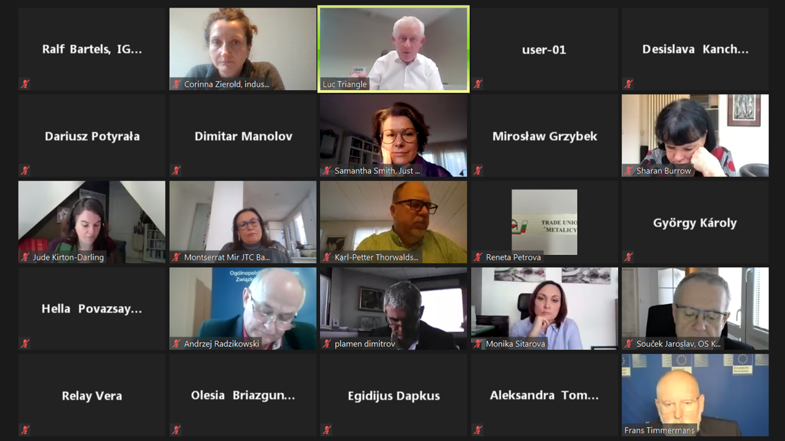 The dialogue with Mr Timmermans was the final event in a series of Roundtable discussions on Just Transition of Heavy Industry in Central and Eastern Europe organised by industriAll Europe, together with the ITUC’s Just Transition Center, that began in late November 2020, to address the specific concerns of trade unions managing the decarbonisation process in the energy-intensive and energy sectors.